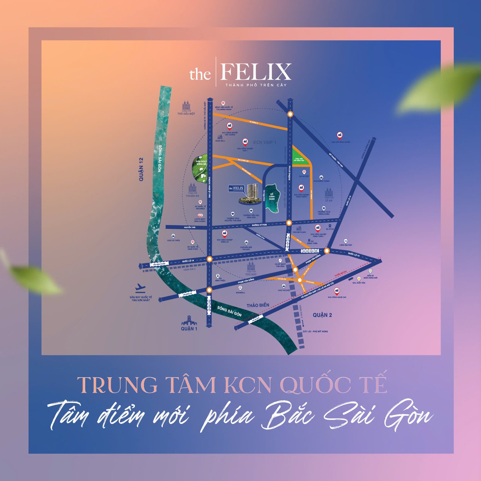 • The Felix mang tới 68 tiện ích nội khu chất lượng như: sân vườn trên cao, hồ bơi panorama, khu BBQ, gym & yoga, thư viện, vườn ánh sáng, cầu check-in, đường dạo bộ đến sky‑bar & thư viện chill… tập trung tại các tầng 1, 5 và 21 .