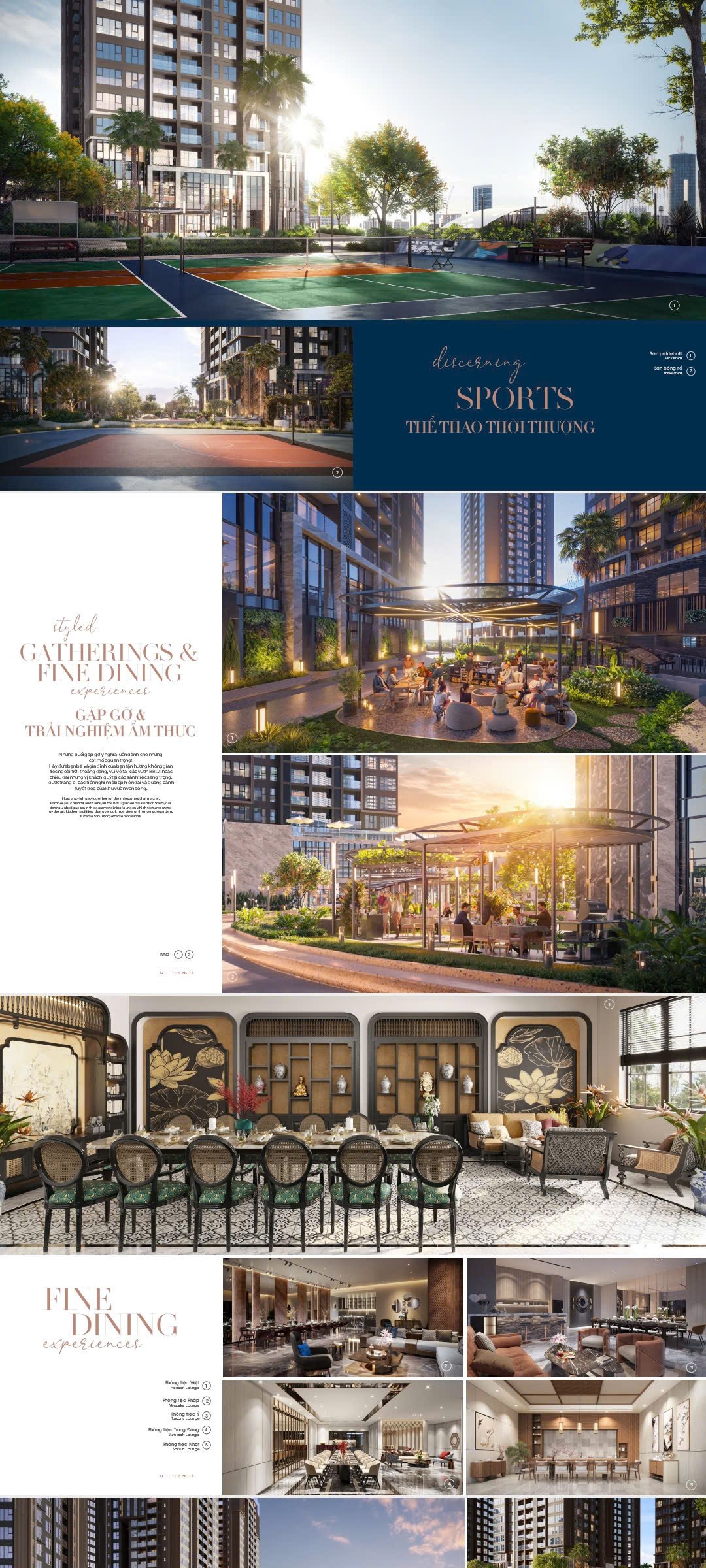 Gia đình sẽ hài lòng với trường mẫu giáo đạt chuẩn quốc tế và sân chơi an toàn, sống động, trong khi những người yêu thích thể thao có thể sử dụng phòng gym hiện đại, phòng yoga và sân tennis. Dự án còn có khu vực BBQ ven sông, rạp chiếu phim ngoài trời và quảng trường cộng đồng cho các sự kiện, tạo nên sự gắn kết giữa cư dân. Với hệ thống an ninh đa lớp 24/7, The Privé đảm bảo sự riêng tư và an tâm trong không gian khép kín độc quyền.