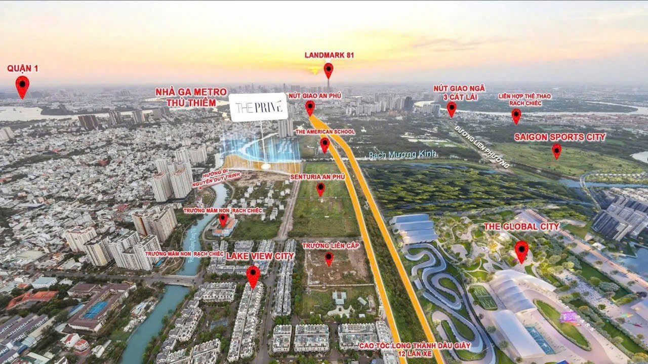 Dự án còn hưởng lợi từ các công trình hạ tầng lớn như tuyến Metro số 1 và sân bay quốc tế Long Thành sắp tới, khẳng định tiềm năng đầu tư bền vững. Với ba mặt giáp sông Giồng Ông Tố và Mương Kinh yên bình, The Privé được ví như “Vịnh Hạ Long của Sài Gòn”, hòa quyện giữa sự tiện nghi đô thị và vẻ đẹp thiên nhiên.